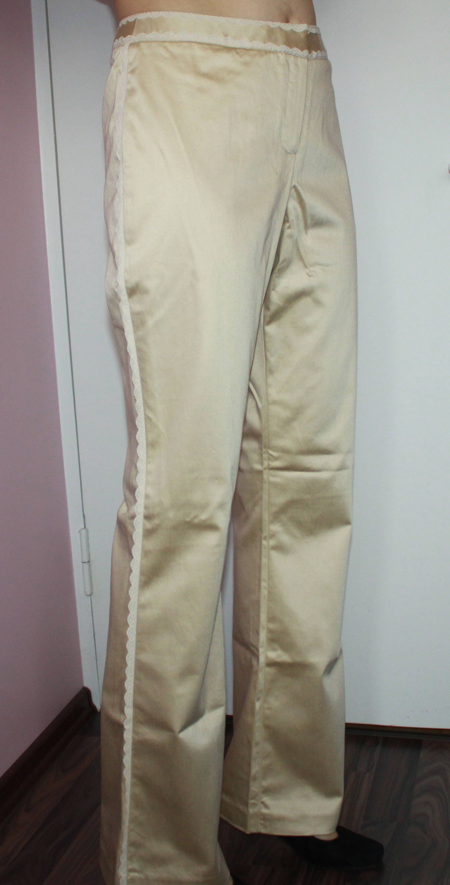 Laura Ashley Vintage Women S Pants With Lace Beige Size Us Etsy