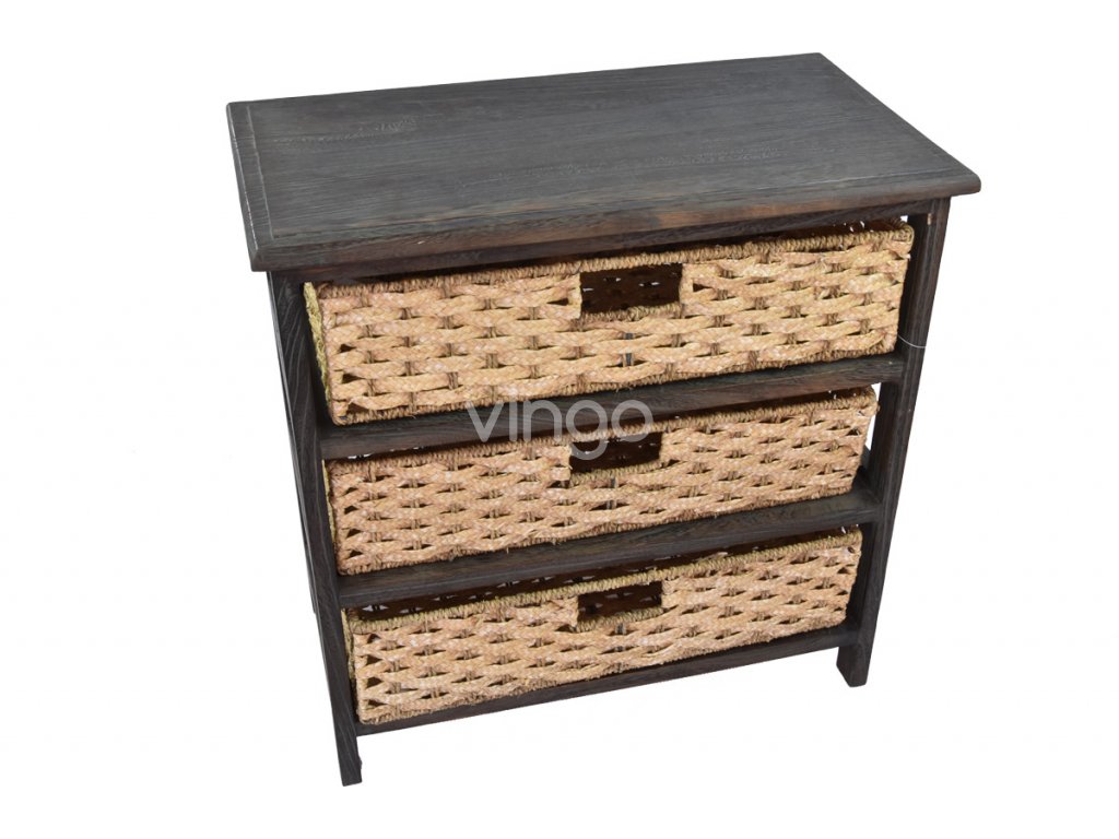 Hnedozelena Drevena Komoda S Kosiky Z Travy Vingo