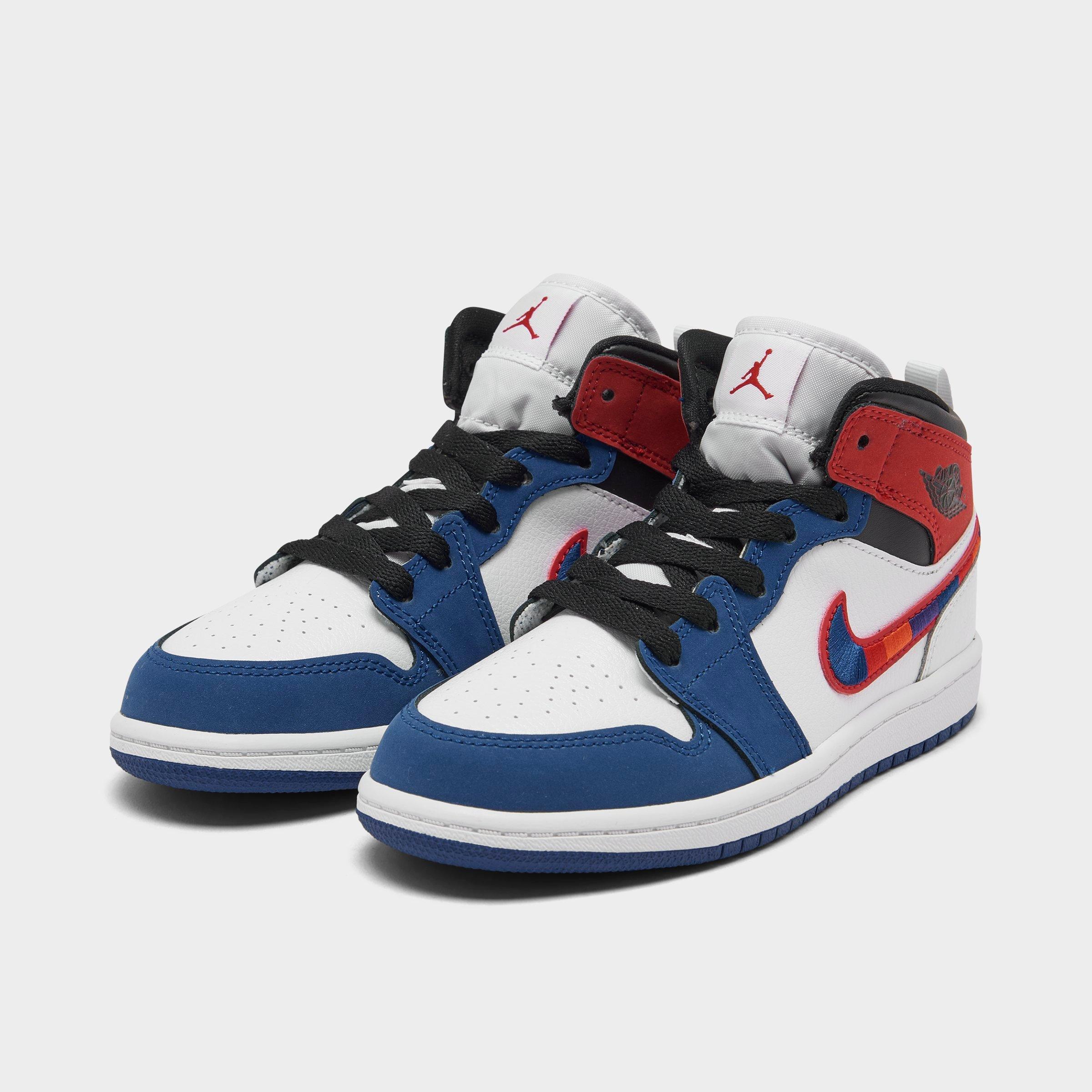 Amazon Com Jordan Nike Air 1 Mid Se Gs Kids Black Royal Blue Red